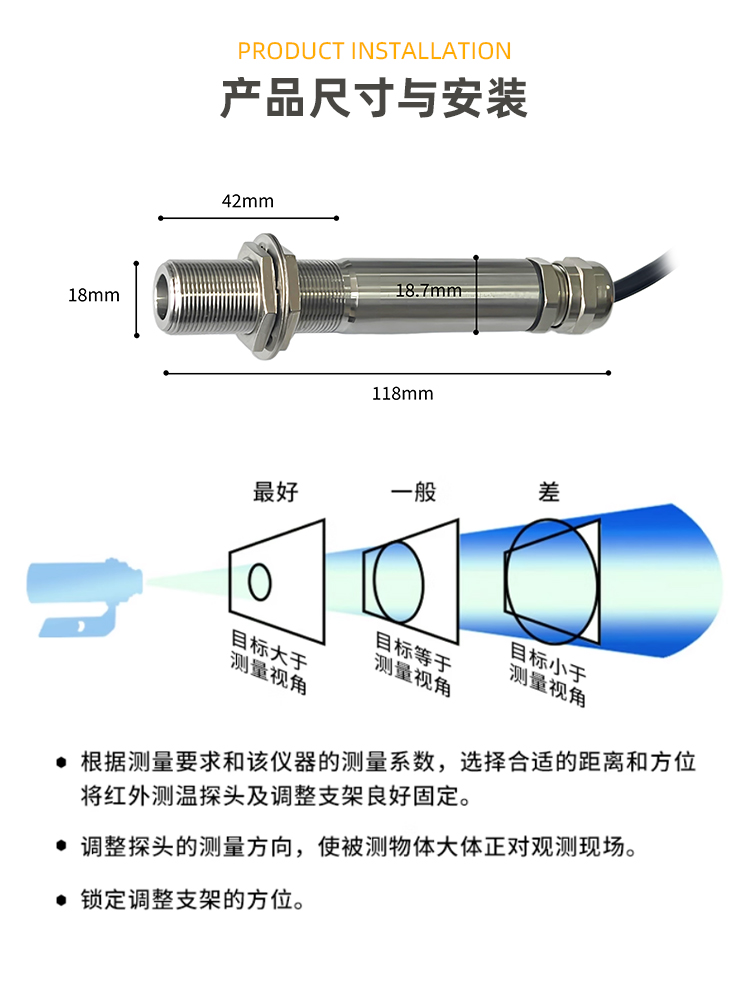 工業(yè)紅外溫度傳感器測溫探頭高精度智能···