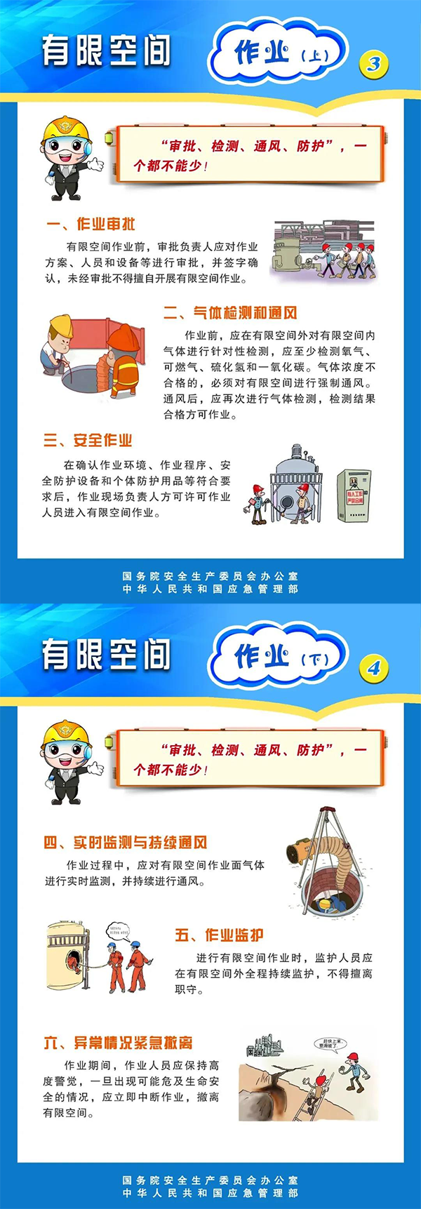 近年來,有限空間作業(yè)事故多發(fā),事故類型和發(fā)生場所較為集中,且施救不當(dāng)導(dǎo)致傷亡擴(kuò)大等特點(diǎn)顯著,為此,國務(wù)院安委會、應(yīng)急管理部發(fā)布有限空間作業(yè)安全宣傳材料,結(jié)合有限空間作業(yè)場景,強(qiáng)調(diào)“小空間、大風(fēng)險(xiǎn)、嚴(yán)防護(hù)、保安全”警示教育作用,進(jìn)一步加強(qiáng)有限空間作業(yè)安全教育,增強(qiáng)從業(yè)人員和社會公眾安全意識。